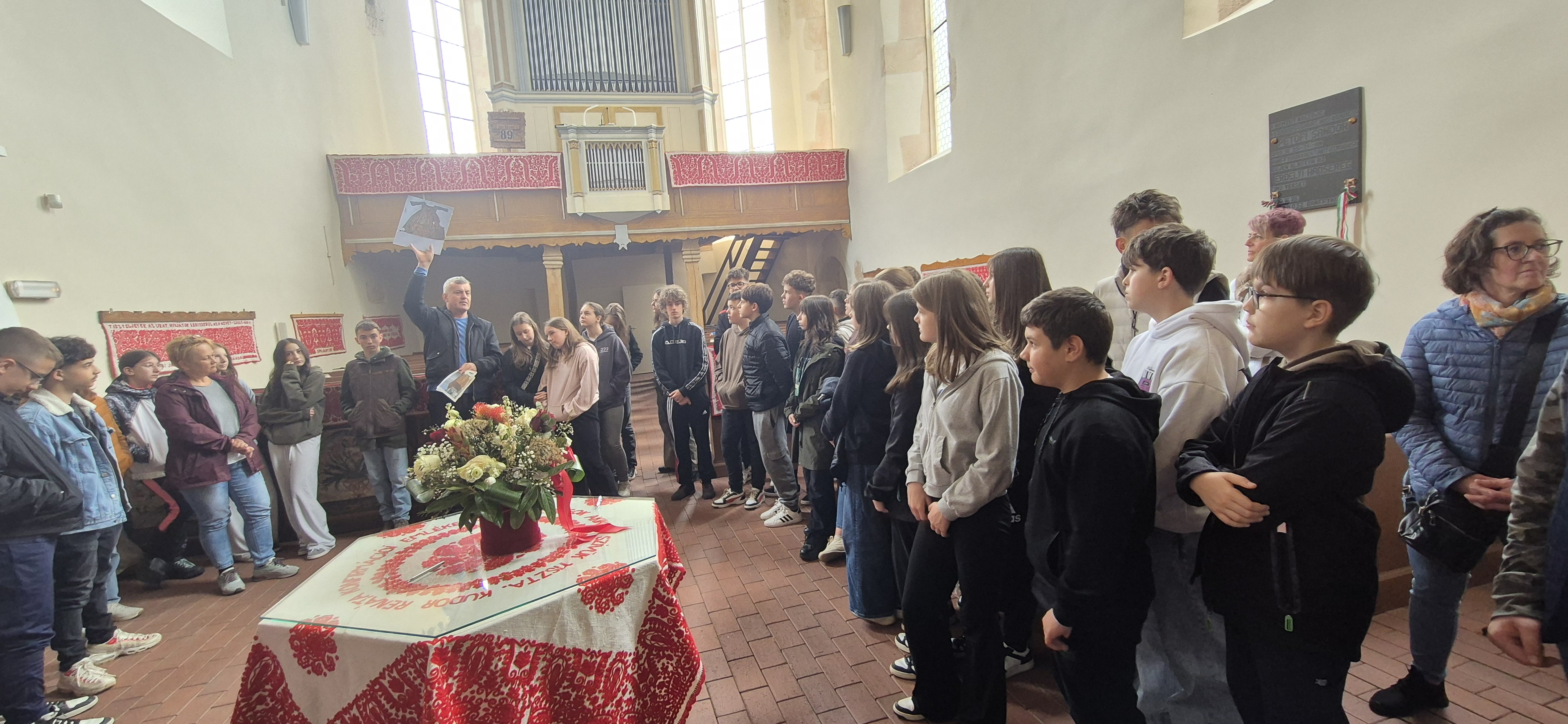 Utána Székelyderzsre indultunk, ahol a gótikus stílusban épült unitárius erődtemplomot tekintettük meg. Megtudtuk, hogy a 1300-as években építették az eredeti kápolnát, majd 100 évvel később kibővítették. Az erődtemplom elnevezés utal a védelmi funkciójára is. Megnézhettük a falán lévő Szent László legendáját elmesélő falfestményt és a rovásírásos téglát is.